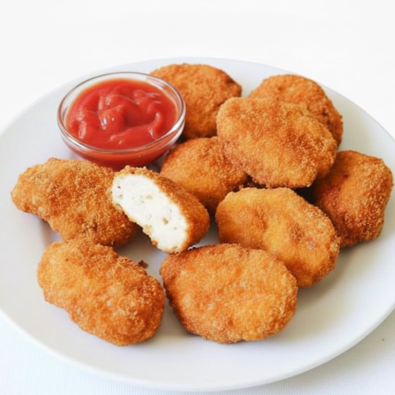 Porción de nuggets de pollo dorados y crujientes por fuera, suaves y jugosos por dentro. perfectos para acompañar tus platillos, compartir o disfrutar como snack. una opción clásica que siempre se antoja.