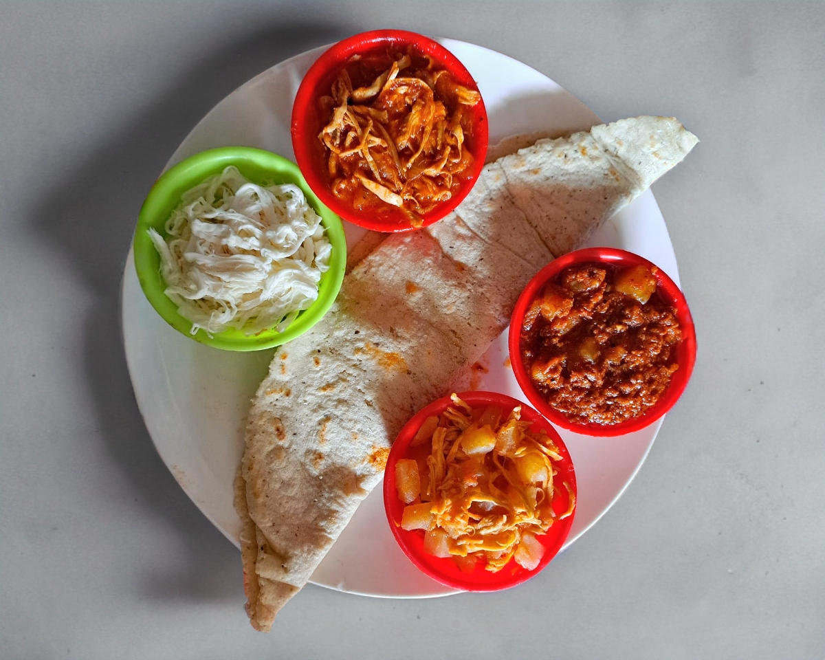 Ord. de 3 pzas guisados a elegir: pollo con papa, tinga, chorizo con papa y queso oaxaca. (Porción personal)