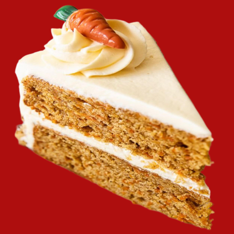 Bizcocho de zanahoria, nuez, crema agria y canela. Relleno de betún de queso crema.