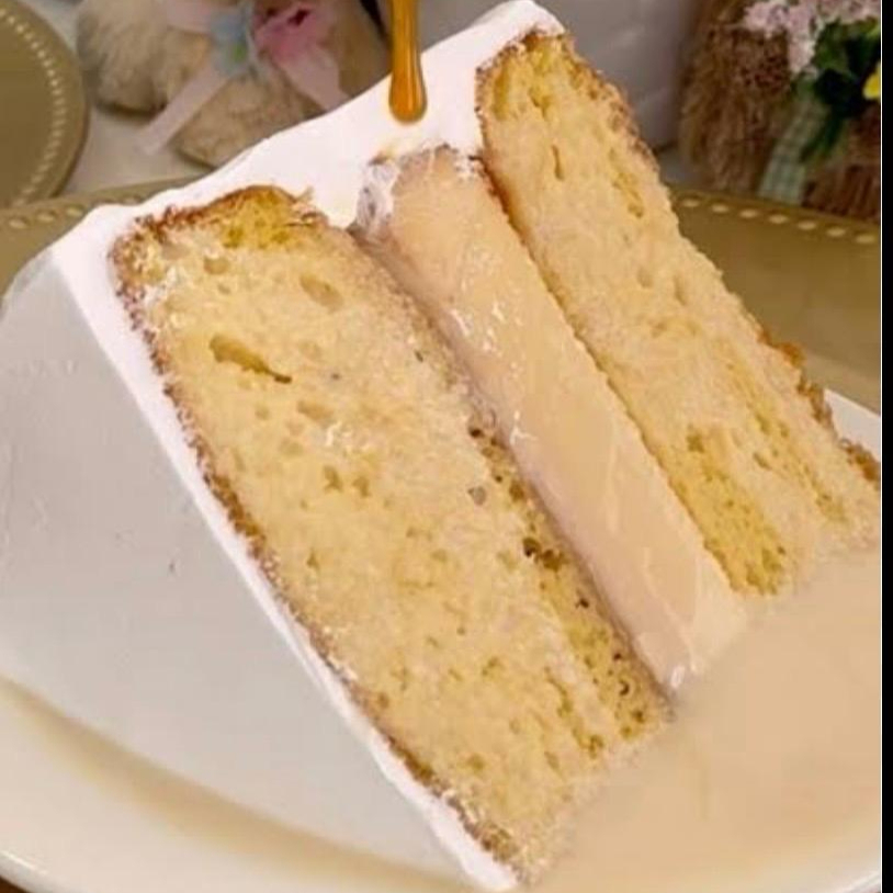 Pan de vainilla, bañado en tres leches y relleno de flan napolitano.