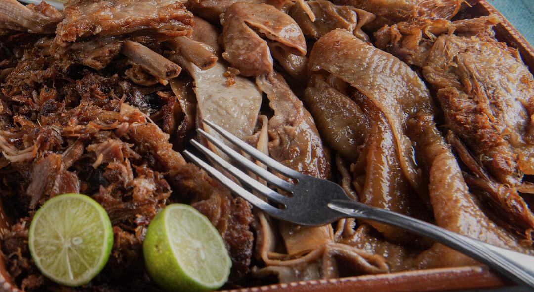 Maciza, cuero y costilla, estilo especial. Incluye salsa verde, roja, cebolla, cilantro, limones y tortillas.