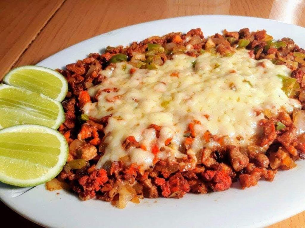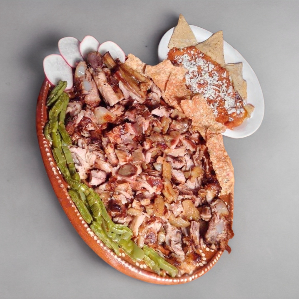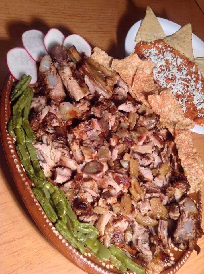 Deliciosas carnitas estilo michoacán, gratis guarnición frijlolitos, chicharrón, nopalitos con cebolla, tortillas, salsa y limones.