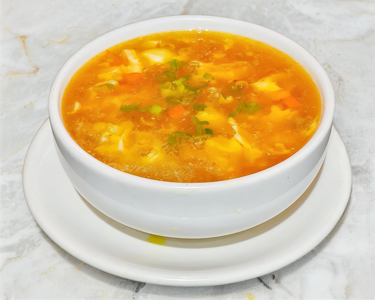 Sopa con noodles y vegetales (apio, zanahoria, cebolla, lechuga y brócoli), con su consomé picante.