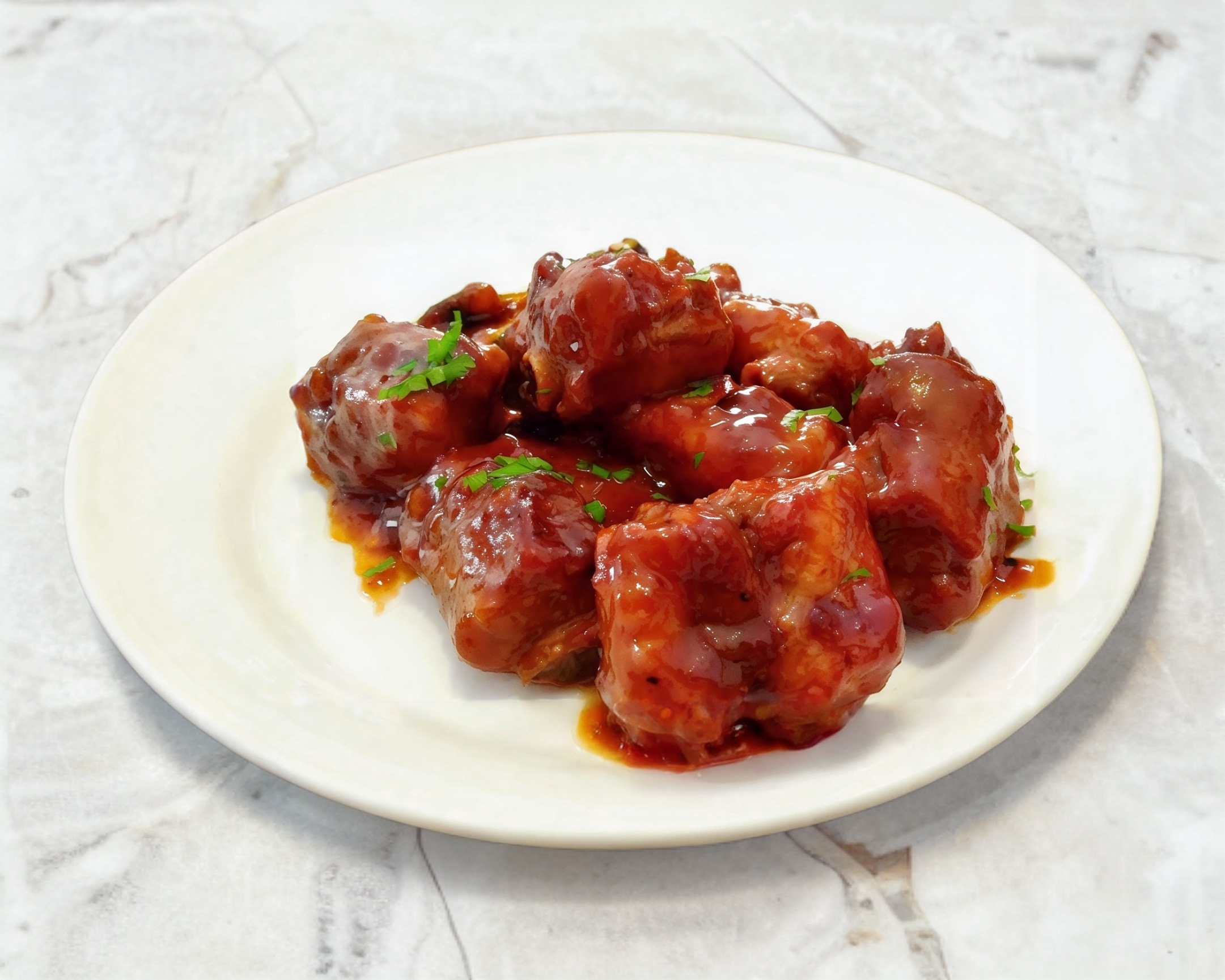 Alitas bañadas en salsa BBQ (6 piezas).