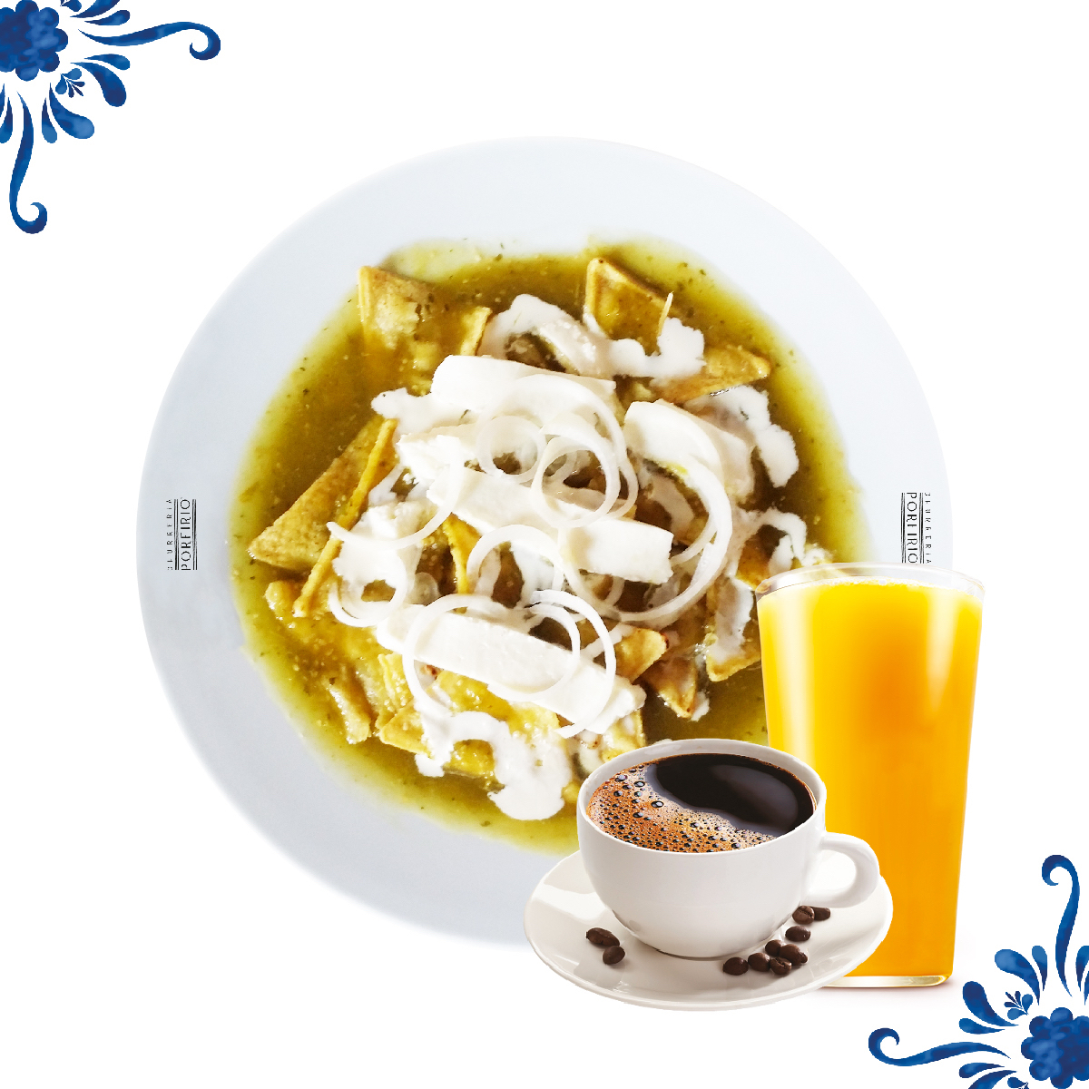 Crujientes totopos cubiertos con salsa verde o roja, acompañados de crema, queso fresco y un toque de cebolla morada, perfectos para empezar el día con energía.