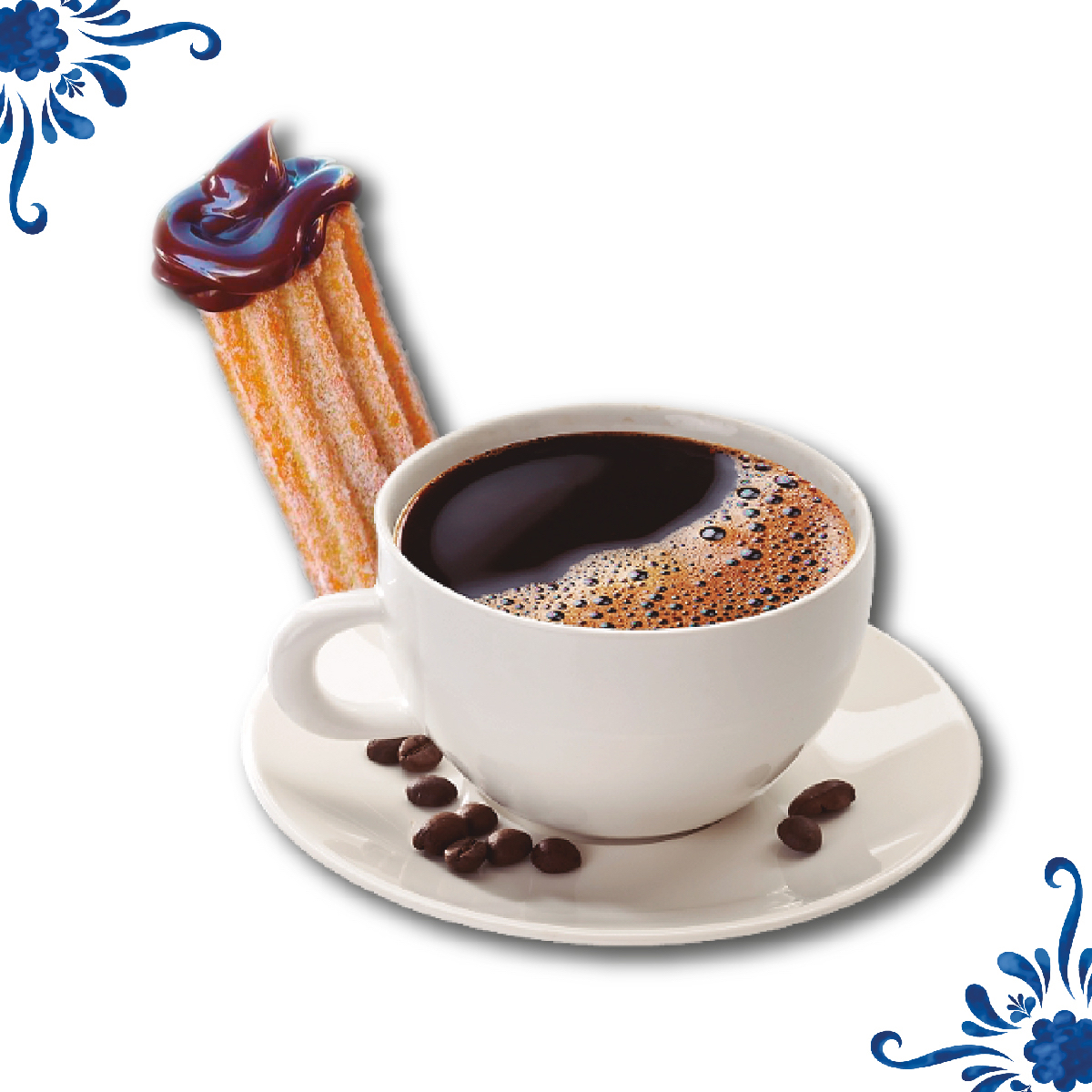 Un churro relleno acompañado de un café de olla (354 ml) para comenzar con energía.
