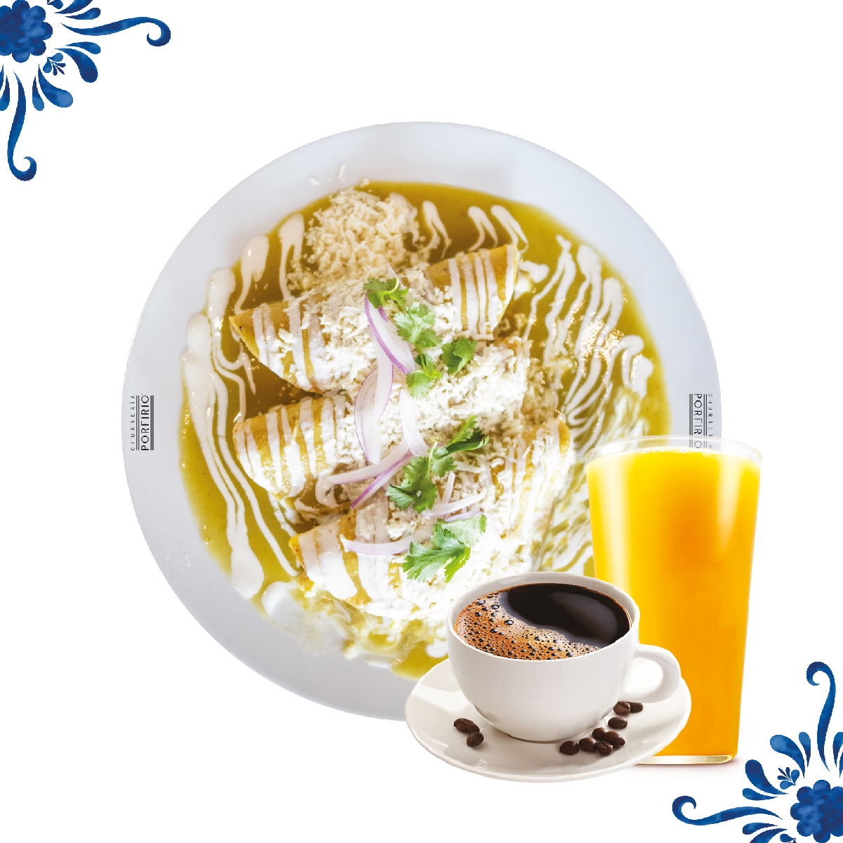 Tortillas rellenas de pollo, bañadas en salsa verde o roja, acompañadas de queso, crema y cebolla, una opción clásica y deliciosa.