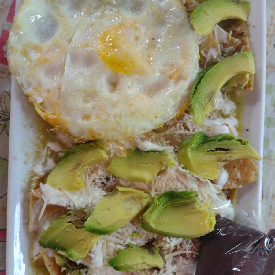 Chilaquiles verdes con Cecina Huevo y Pollo