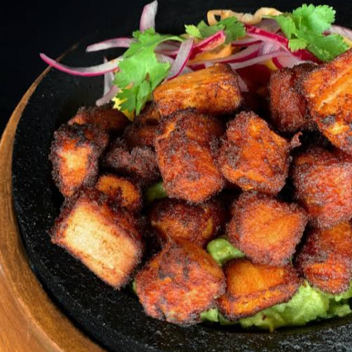 Pulpo bien doradito bañado en un adobo y lleno de sabor. pidelo en tortilla de harina o maíz.
