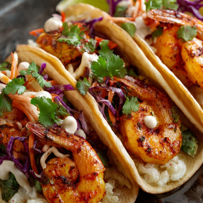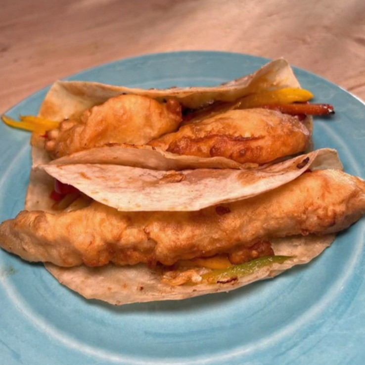 Tacos de camaron o pescado capeado al punto, crujientes por fuera y suaves por dentro.