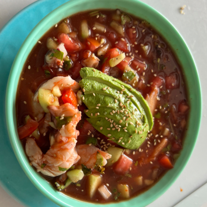 Combinacion perfecta del ceviche acapulco con camaron y pulpo.