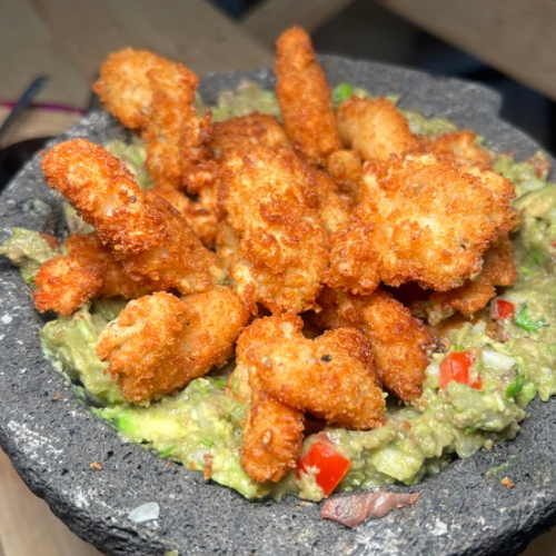 Camaroncitos crujientes acompañados de guacamole