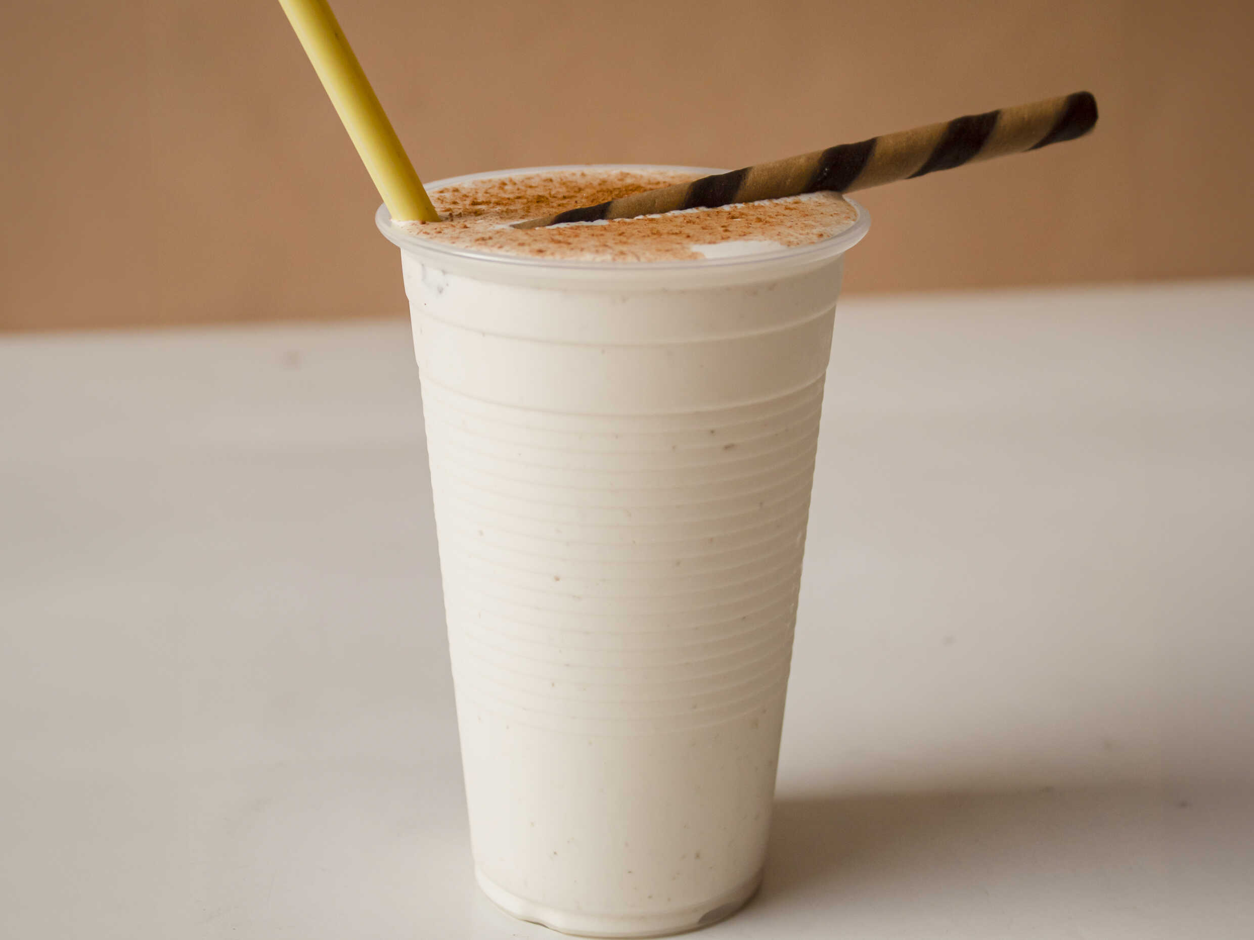 deliciosa bebida a base de hielo, leche clavel y rompope