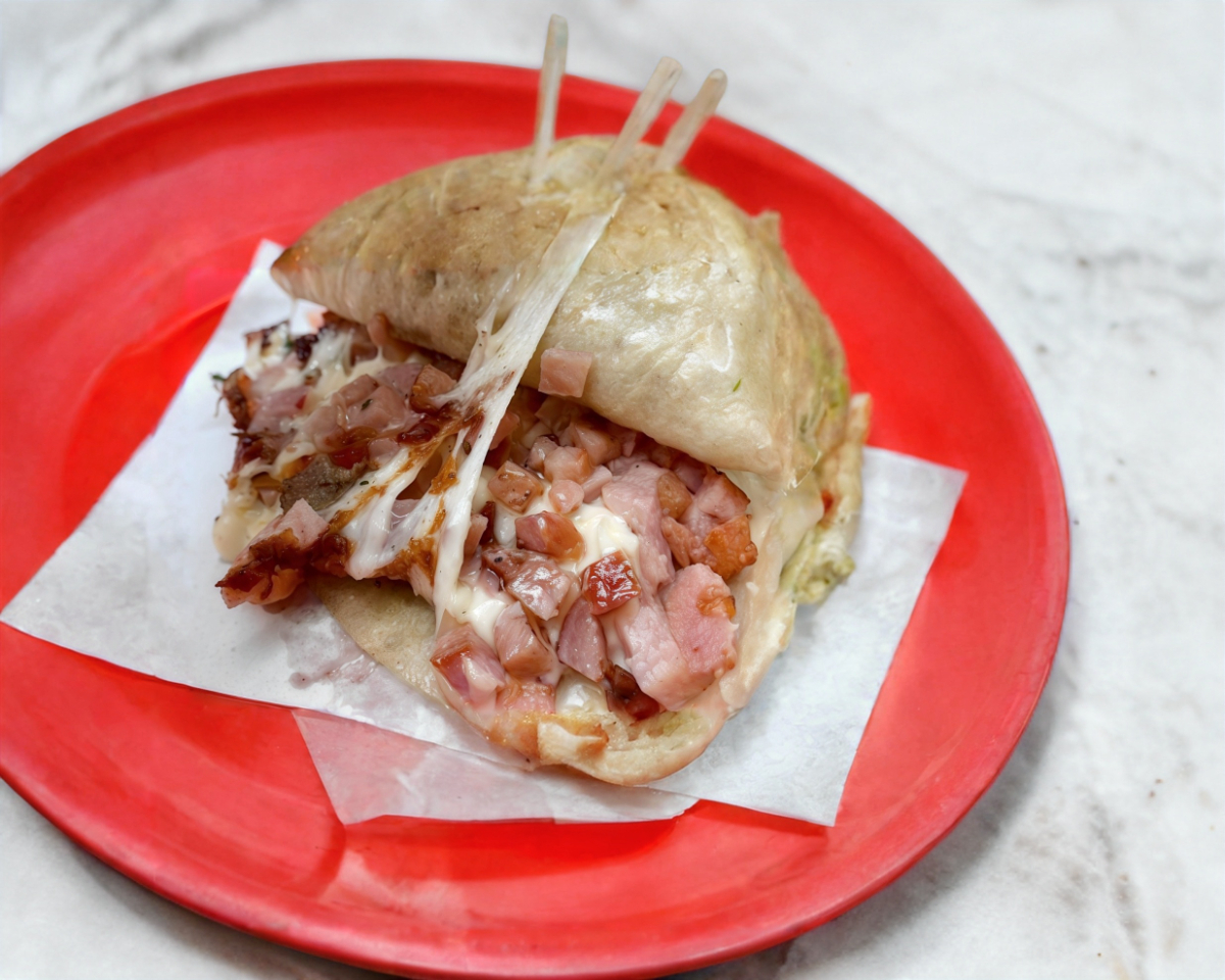 Tortilla de harina, jamón y queso.