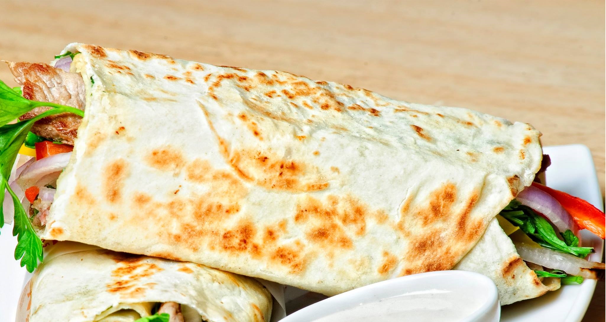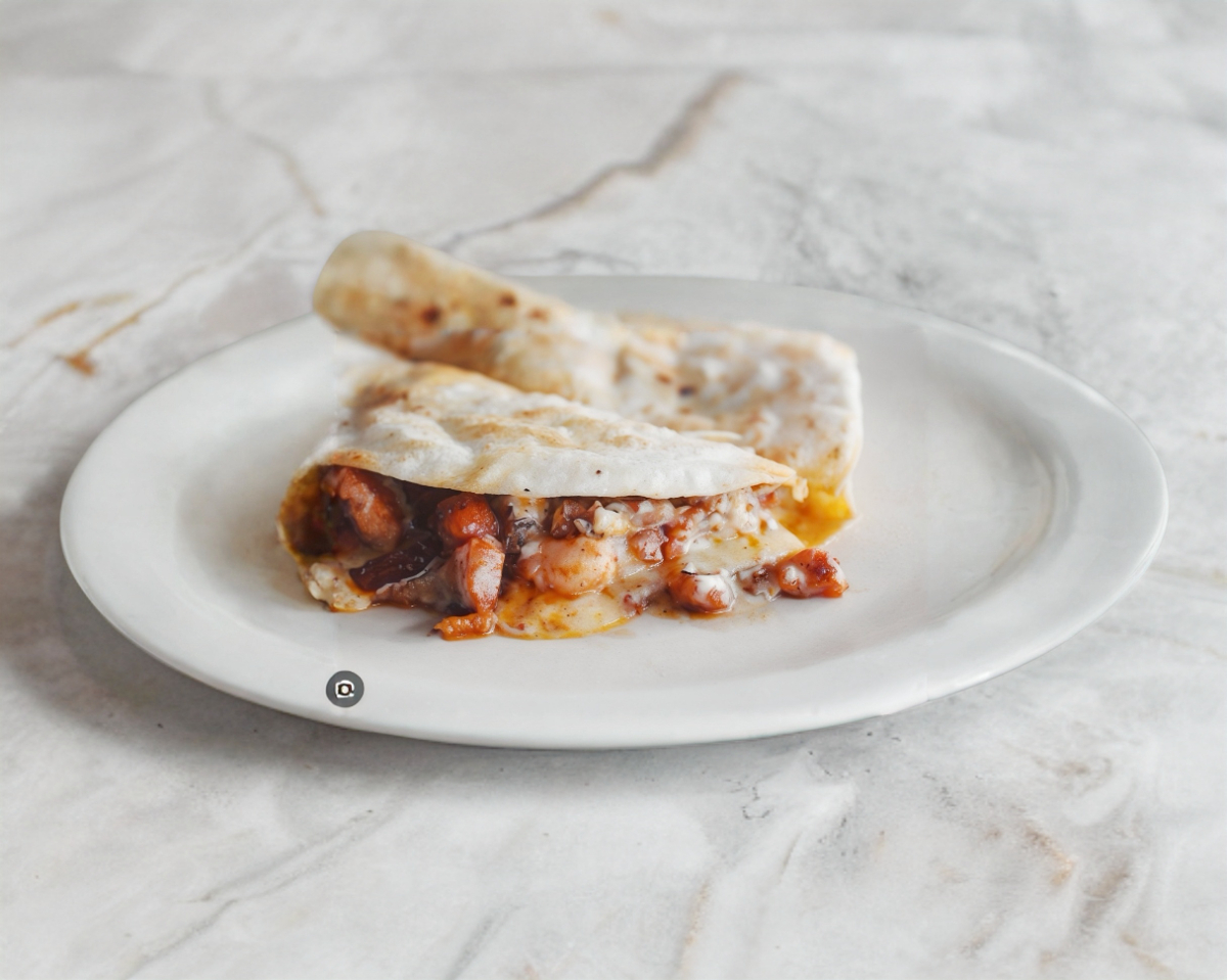 Tortilla de harina, bistec y queso.