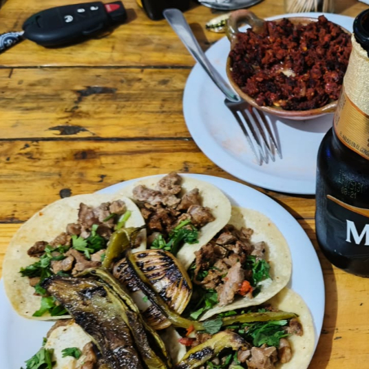 5 Piezas, acompañados de cilantro, cebolla, rabanos, limon, frijolitos , cebolla curtida y nopales