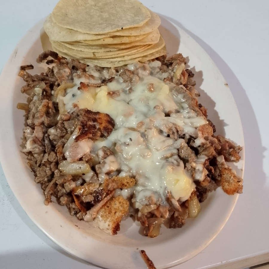 Pastor, Bistec, Jamón, Tocino, Cebolla y Queso