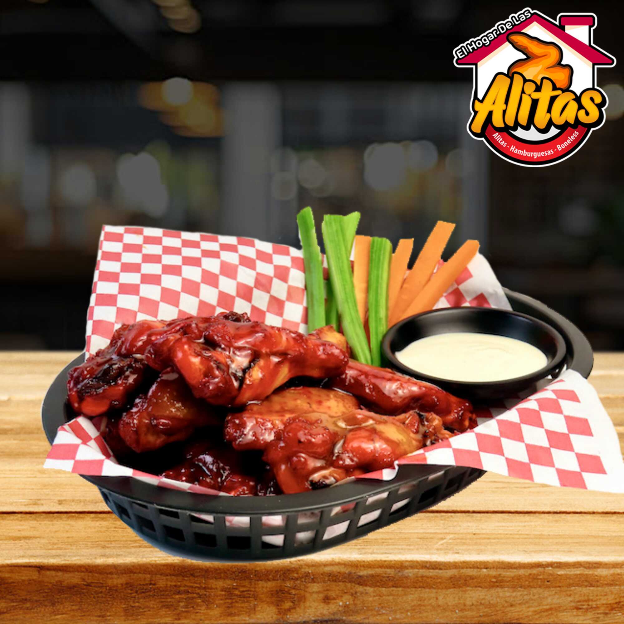 Deliciosas alitas bañadas y preparadas con la salsa de tu preferencia, Incluye Verdura y Aderezo Ranch.