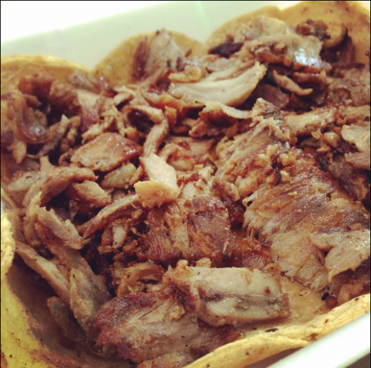 Preparado con carne árabe, queso gouda y pimiento morrón, se acompaña de tortillas de maíz, limones y salsa de piña, verde y chipotle.