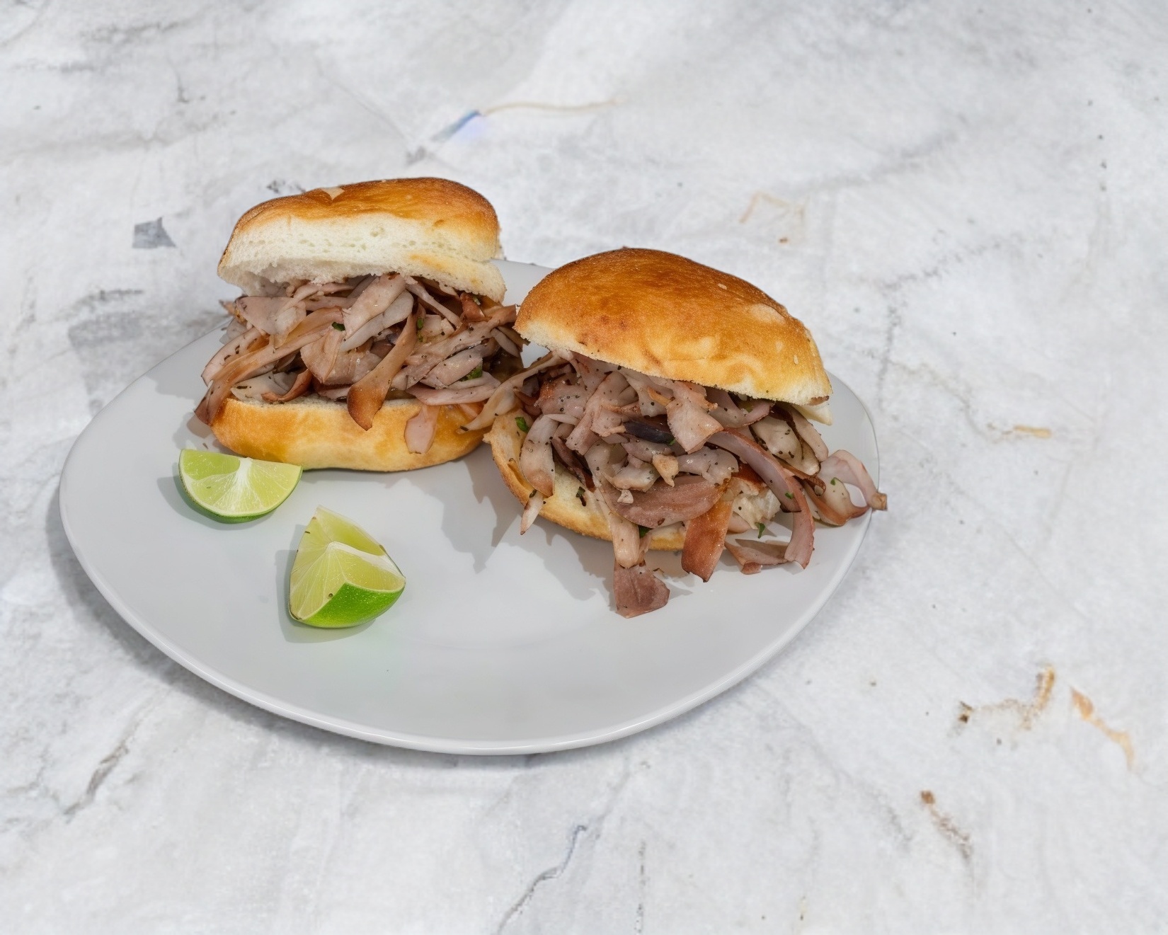 Cemita costeña natural, solo con carne, acompañada de limones y salsa a elegir.
