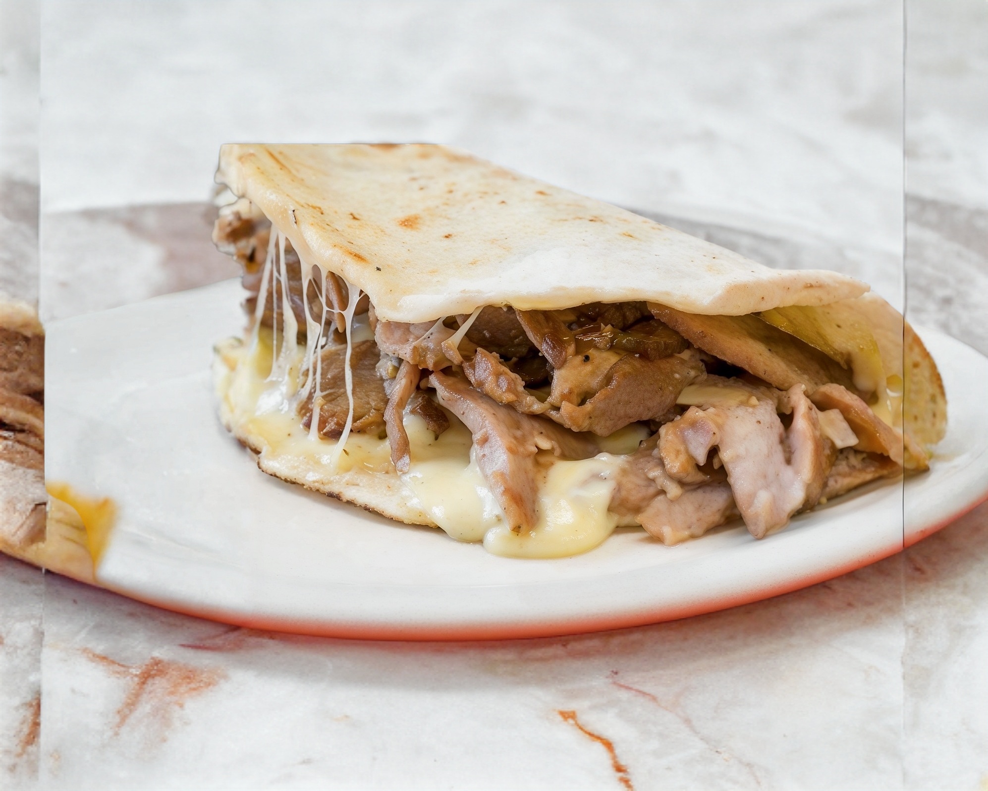 Preparada con pan pita, carne árabe y queso gouda, incluye salsa a elegir y limones.