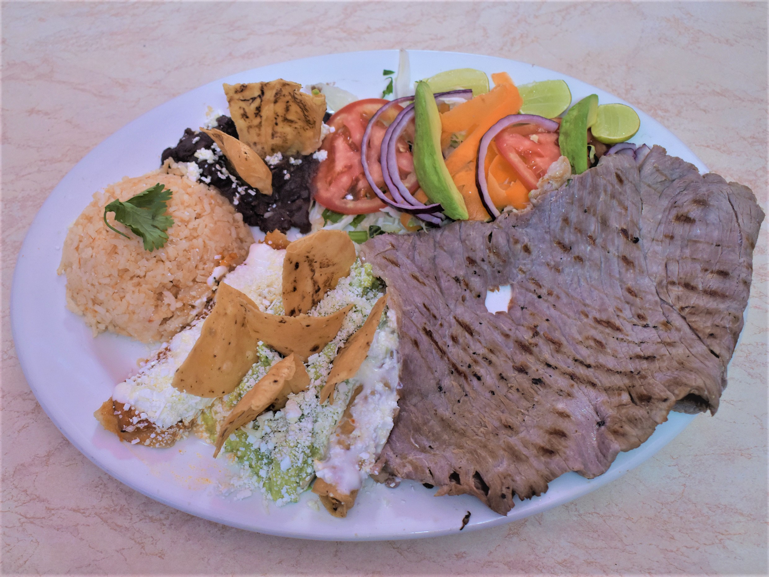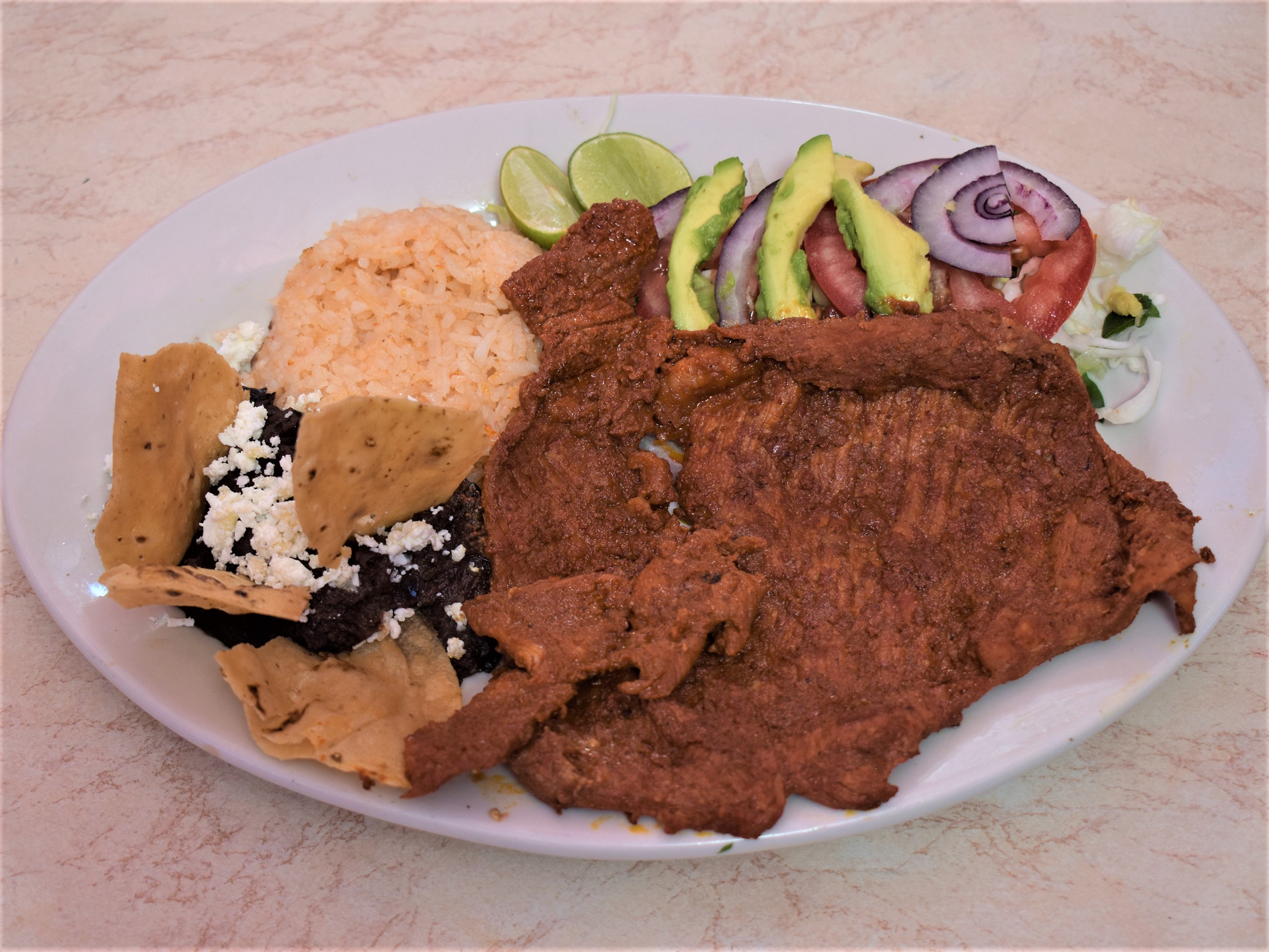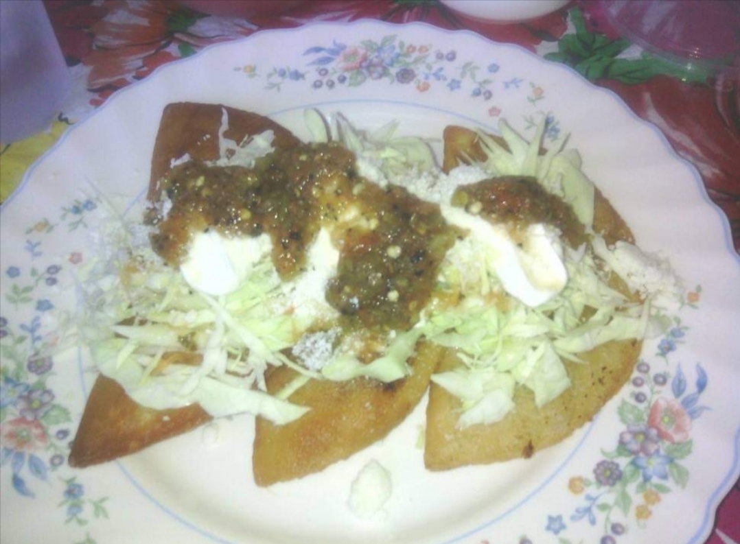 Totopos ( 180 gramos aprox) Trae crema, queso rallado, cebolla, a tu elección el acompañamiento, (Cecina, pollo o huevo)
