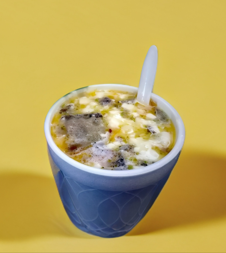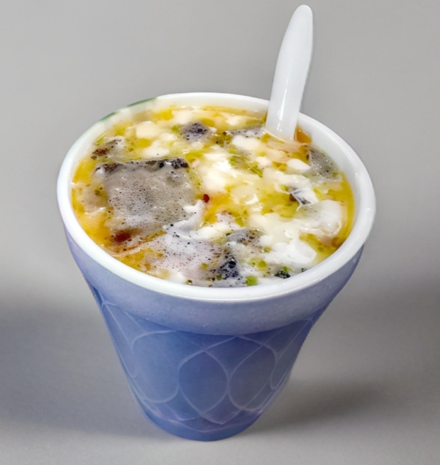 Sopa Maruchan, esquite, mayo y queso rayado