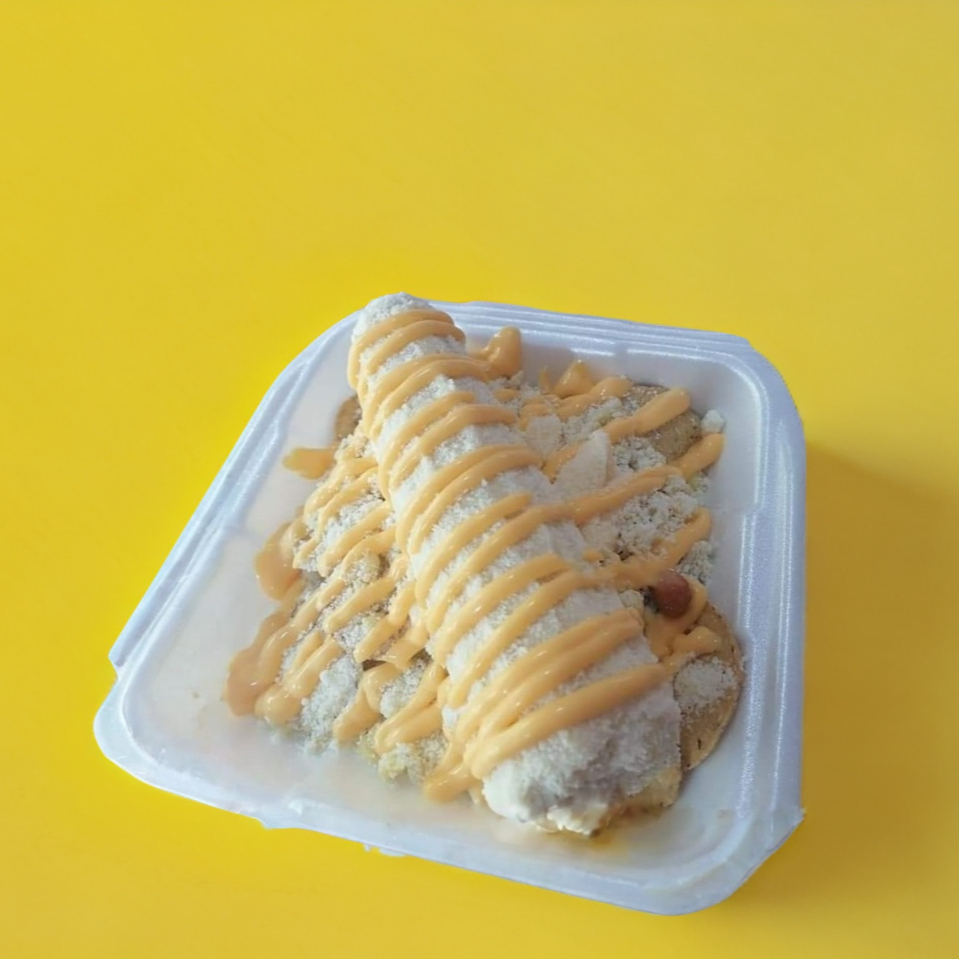 Nachos, esquite, 1 elote completo, mayonesa, queso cheddar y queso rayado