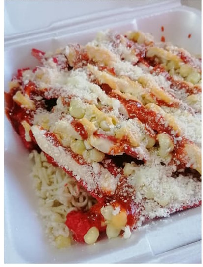 1 Sopa Maruchan, esquite, Mix de Papas Flaming Hot, Cheddar, Mayonesa, Queso Rayado y Salsa Preparada para 1 sola persona.
