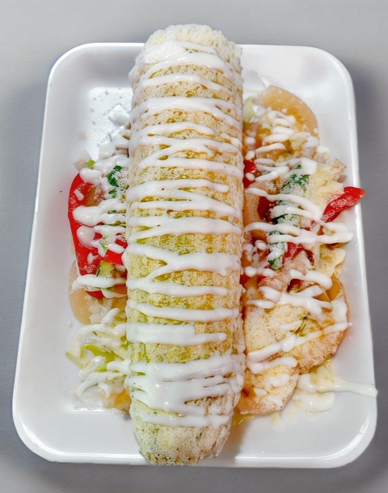 Lechuga, Col, Jitomate, Aguacate, Queso, Crema y Cueritos