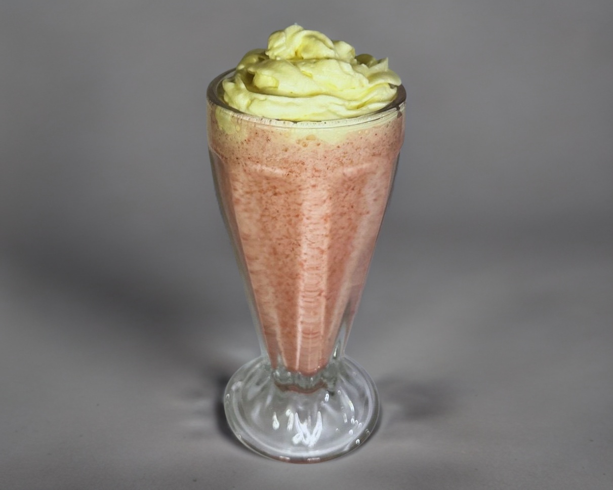 Batido de leche, azúcar, vainilla y fresa natural.