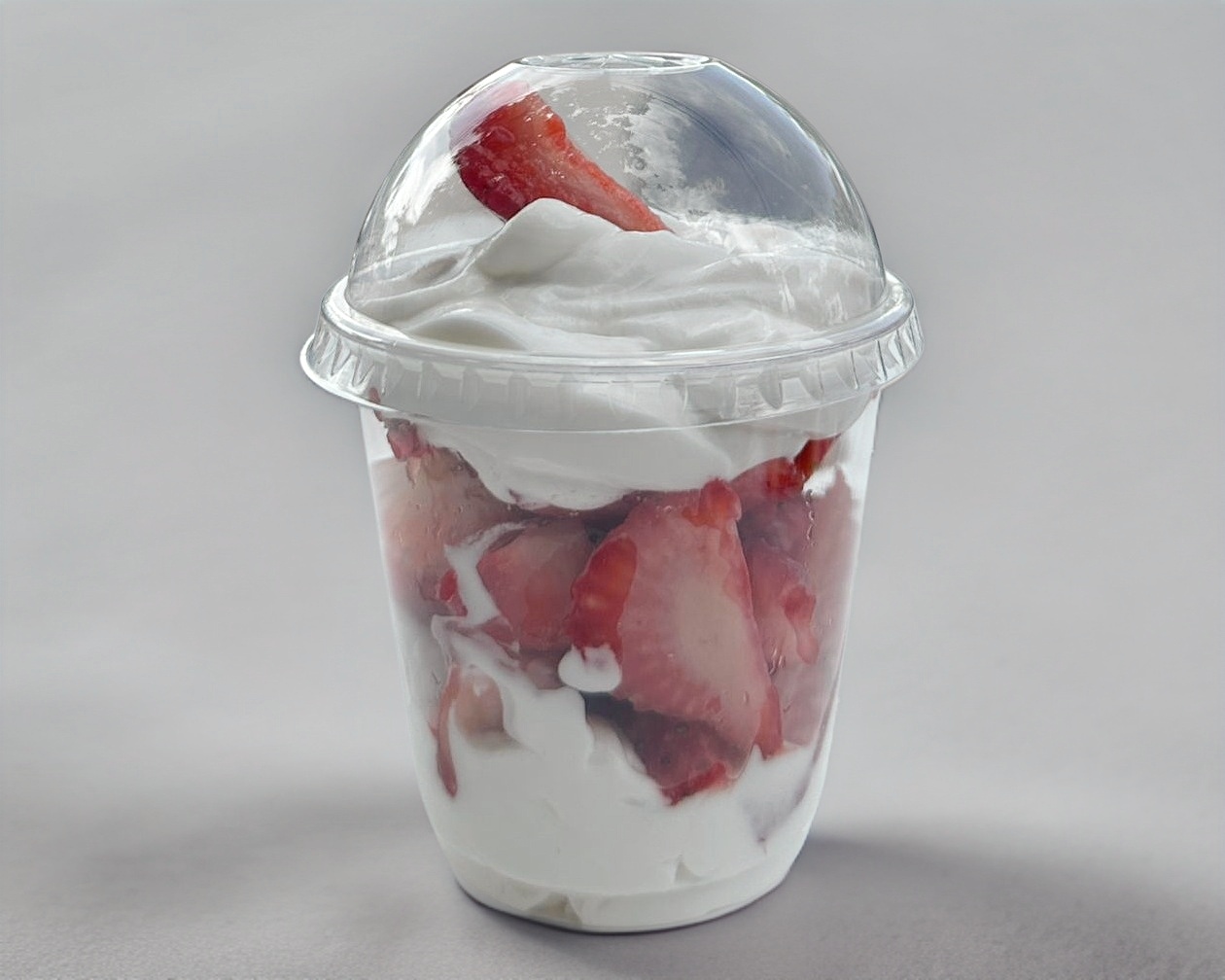 Postre de Fresas bañadas en crema preparada y topping a elegir.