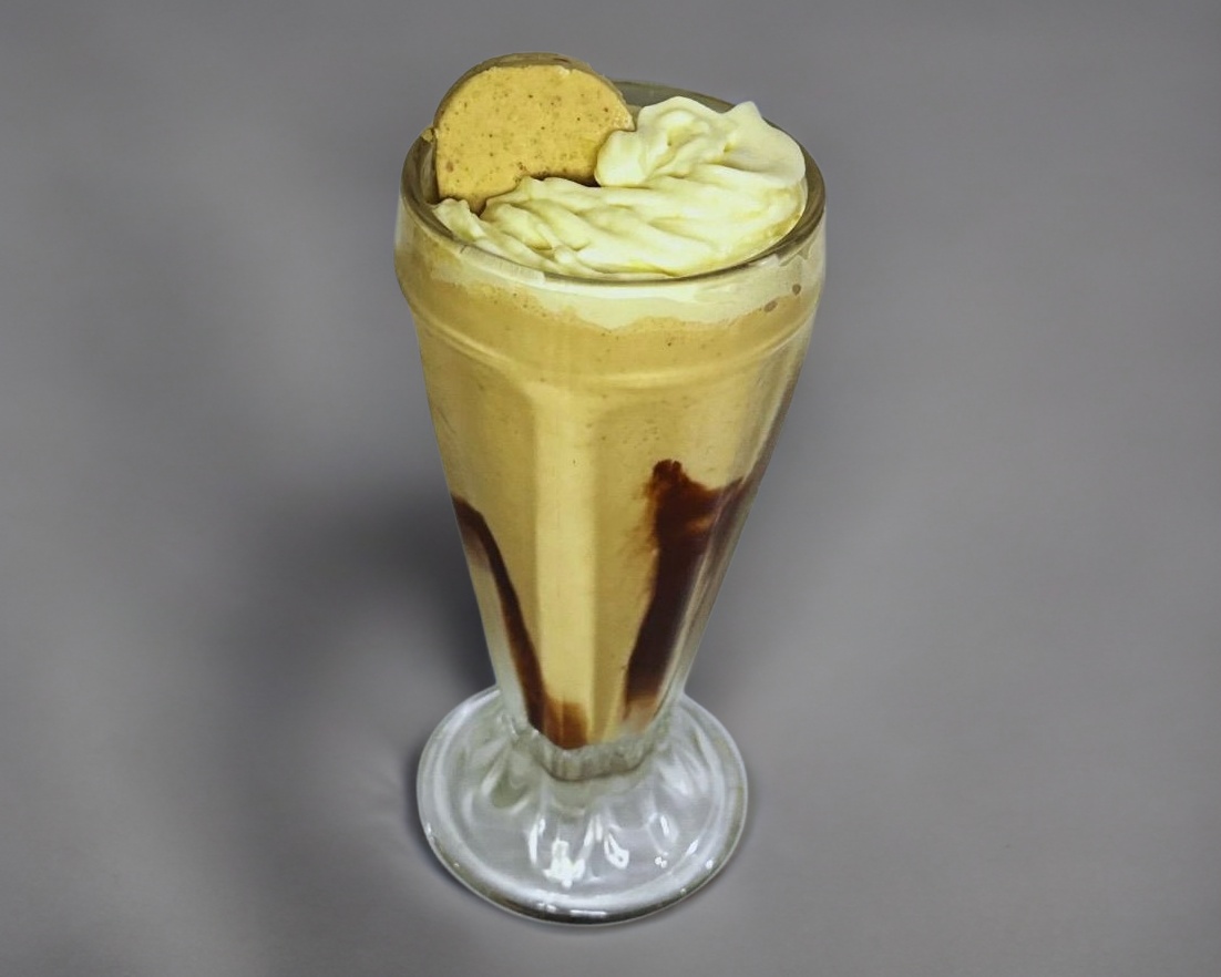 Frappe sabor Mazapán, crema batida y mazapán espolvoreado