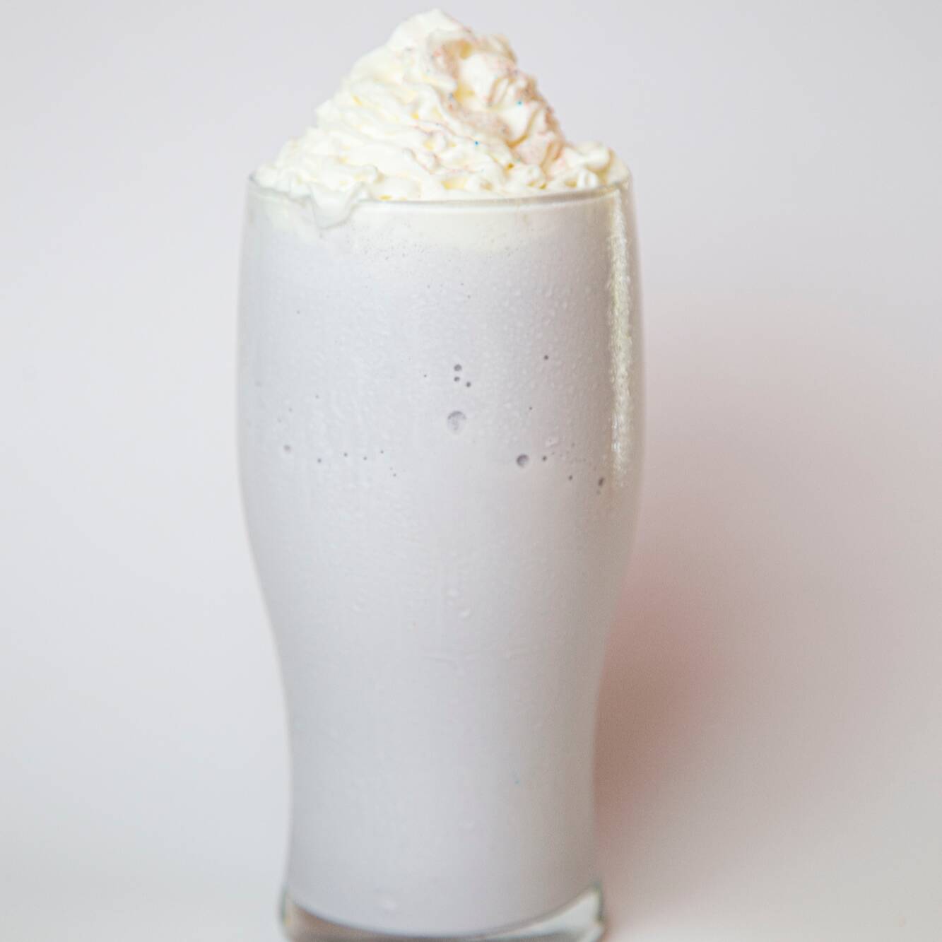 Frappé 16 oz sin café, hecho con chocolate y crema batida en la parte superior.