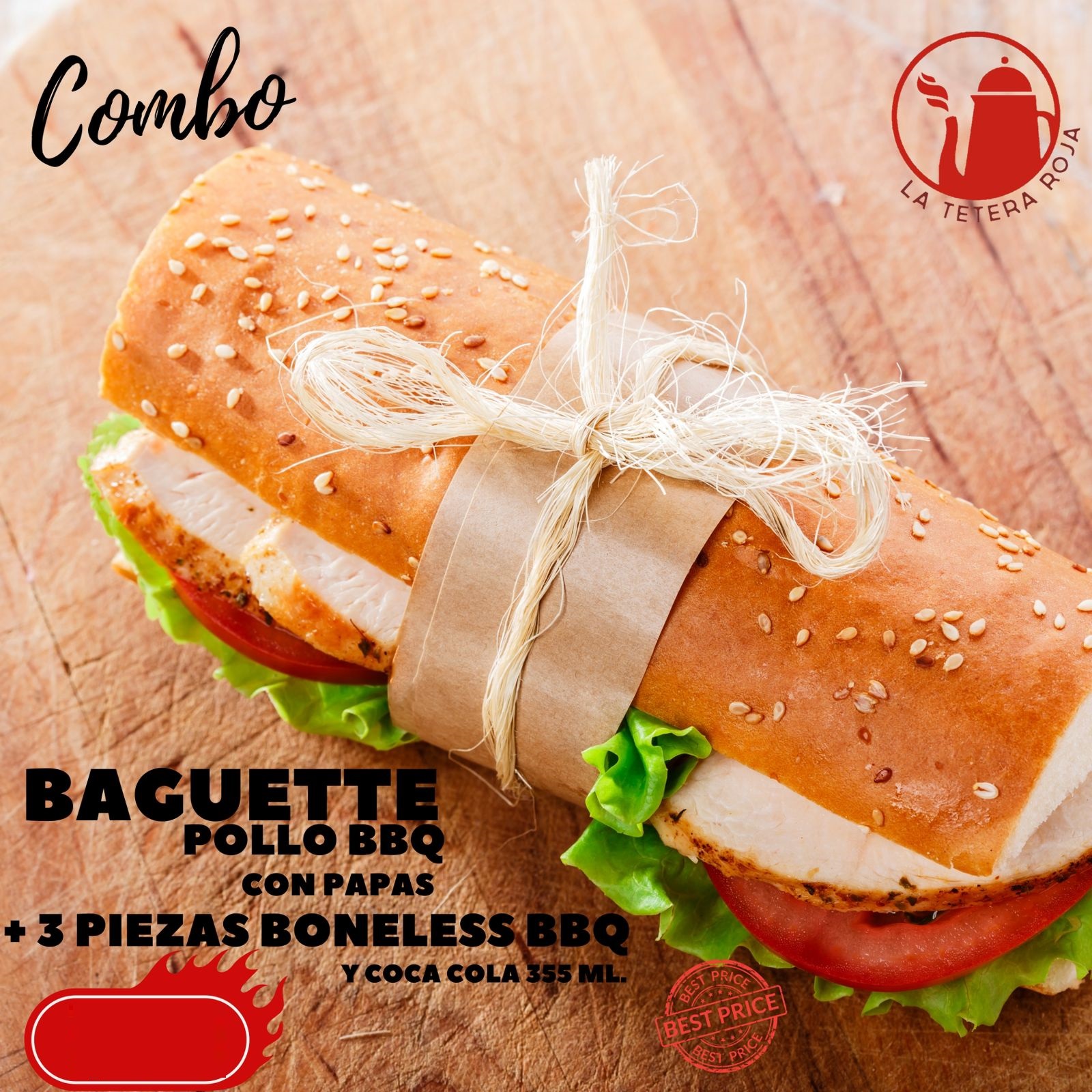 Baguette BBQ+ Papas+ Boneles BBQ+ Coca Cola