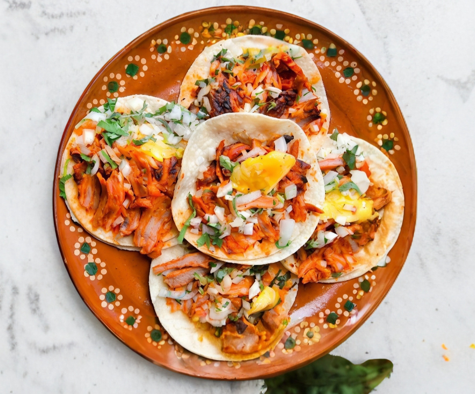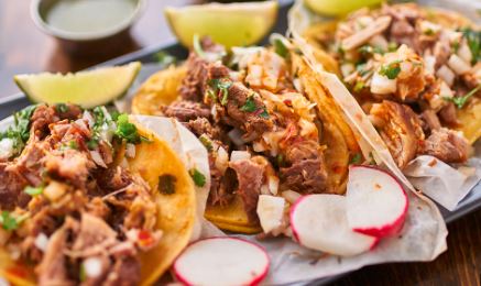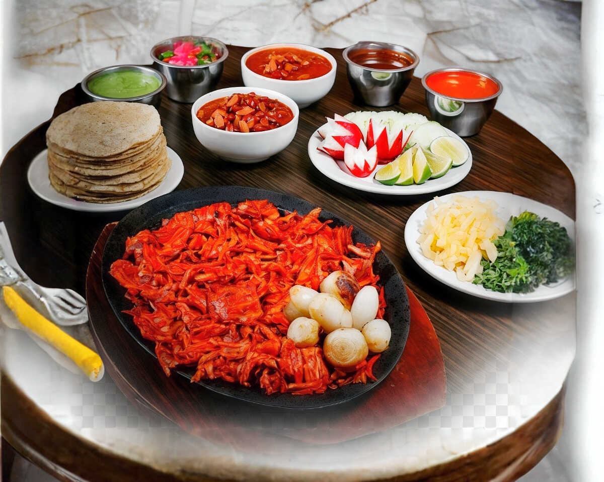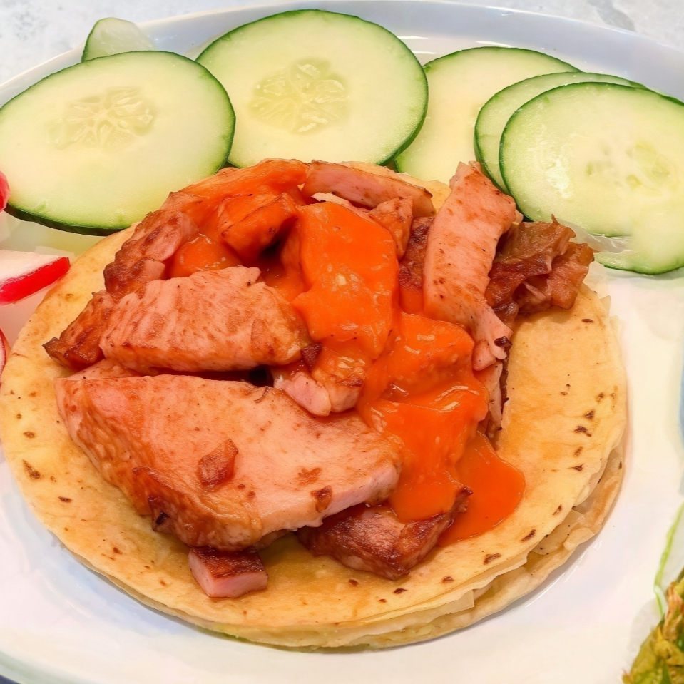 1/2 Kilo de carne al pastor, 1/2 kilo de Tortillas de maiz , rábanos cotrtados , limones y salsa verde y roja