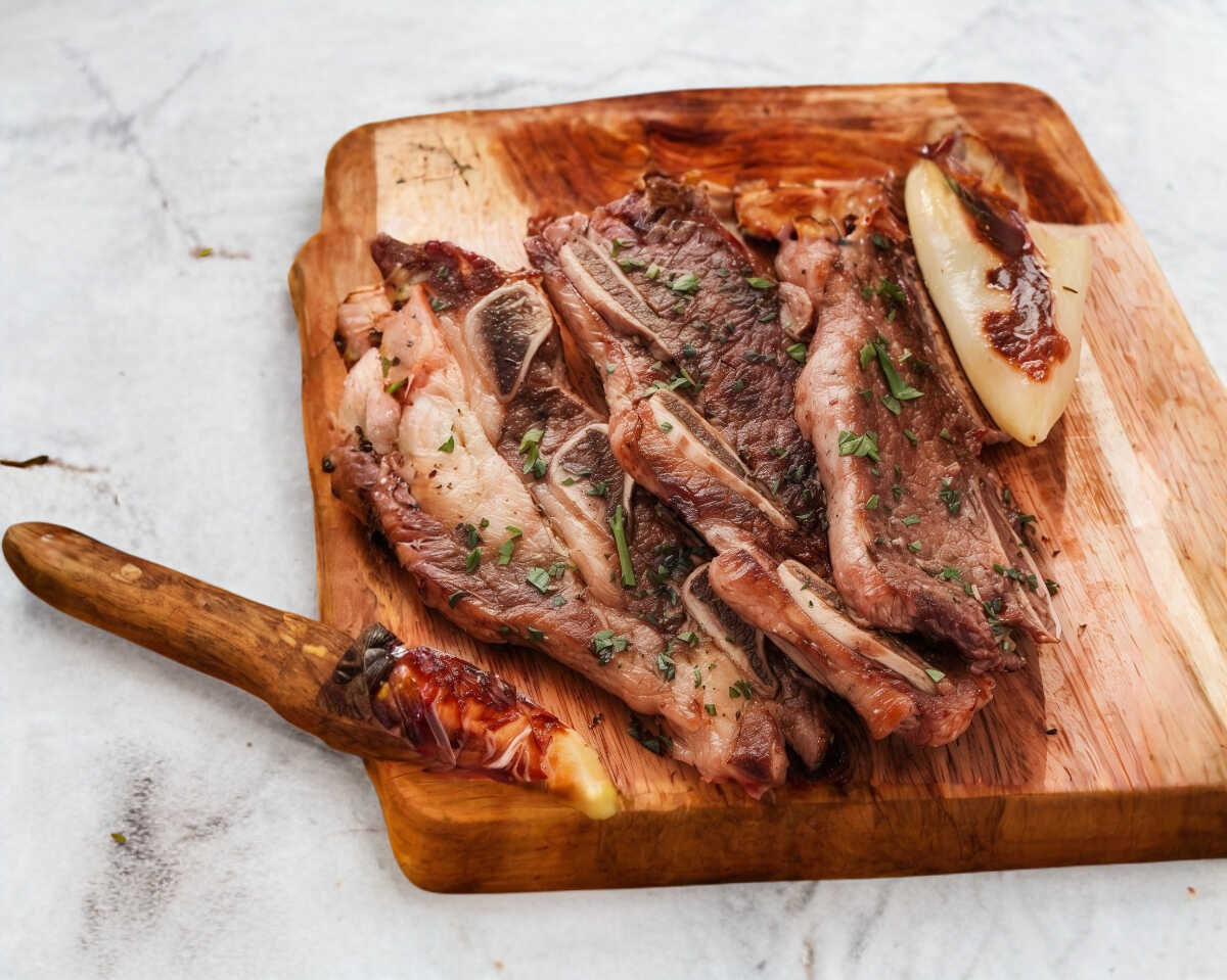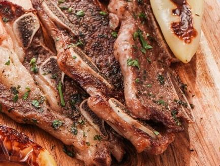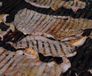 Bistec, chuleta, champiñones, morrón, cebolla, piña, jitomate y queso.
