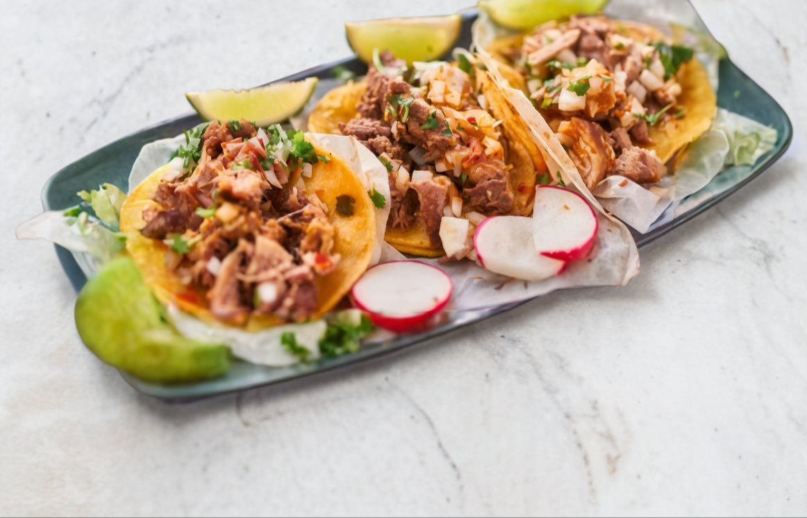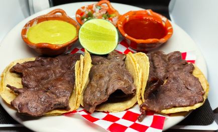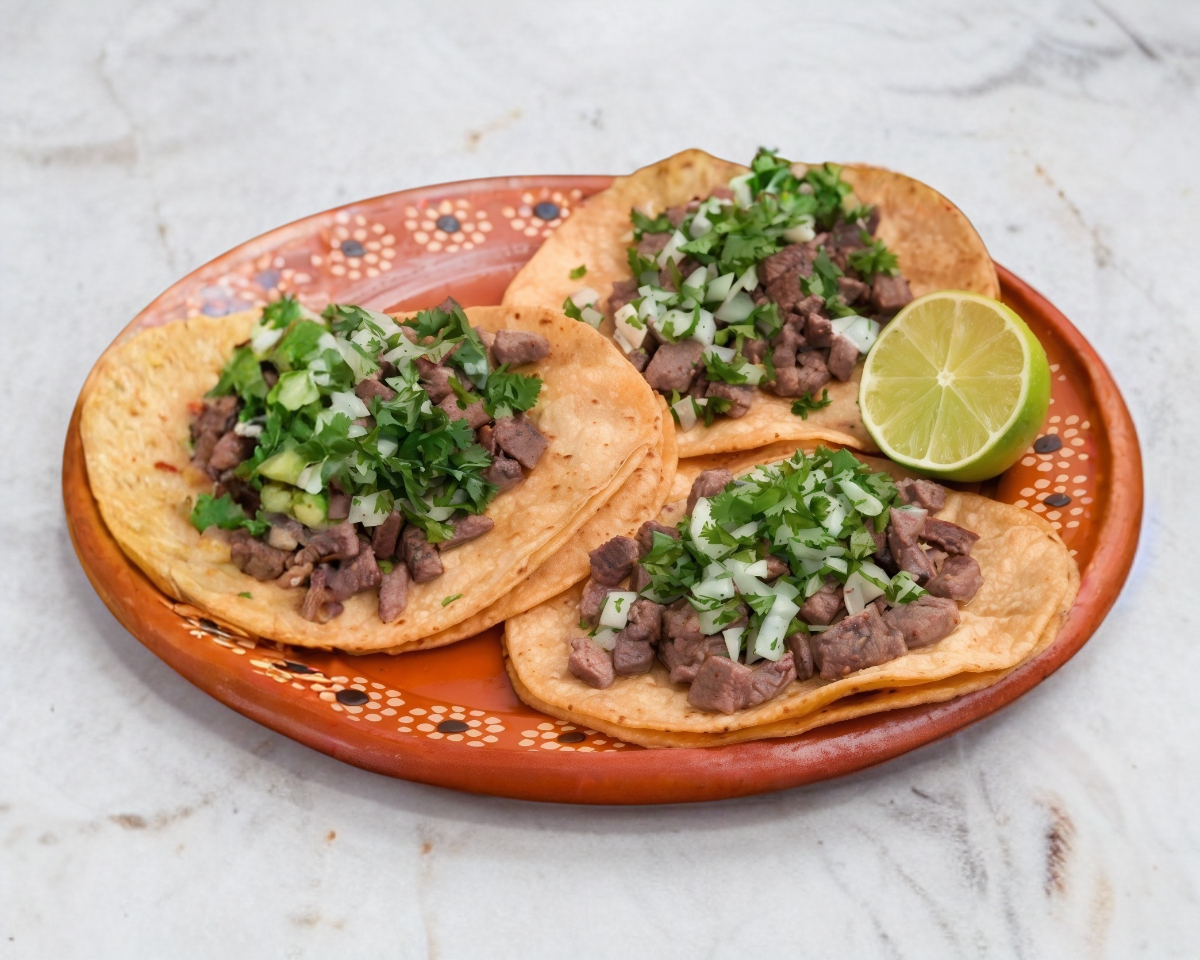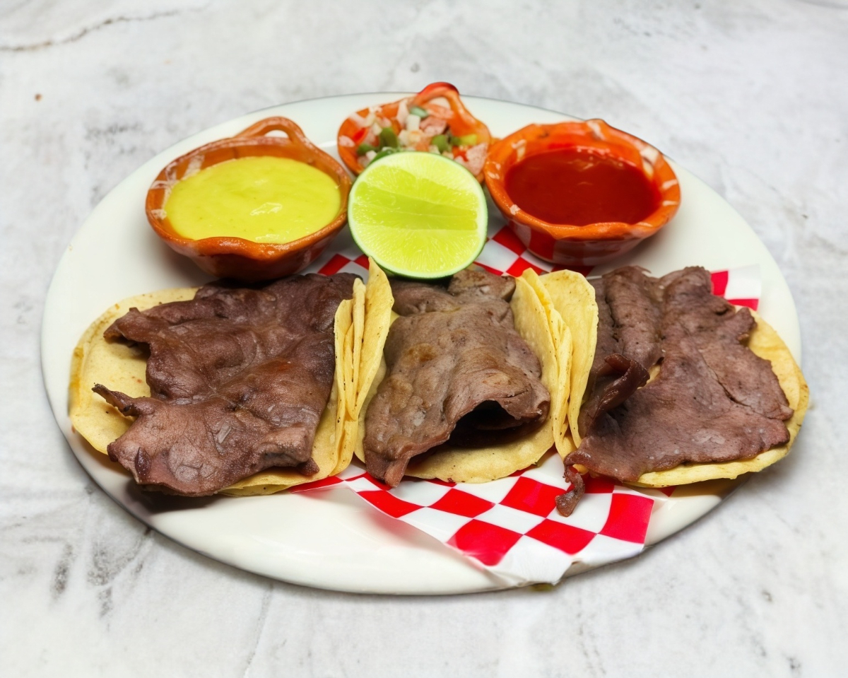 5 Tacos 30gr de cecina + salsas verde y roja + 1 limón