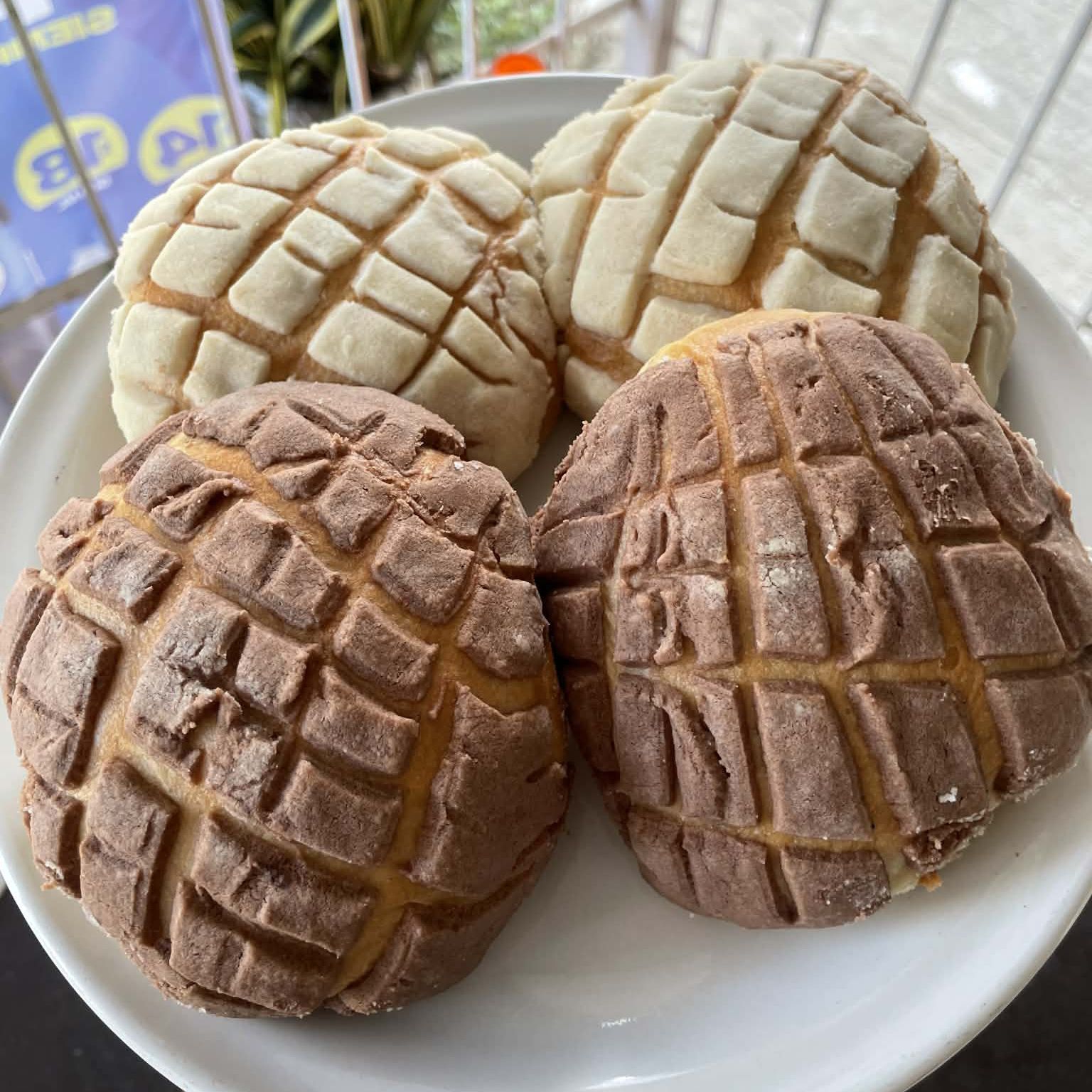 Panquecito de plátano con chispas de chocolate, pan horneado del día.