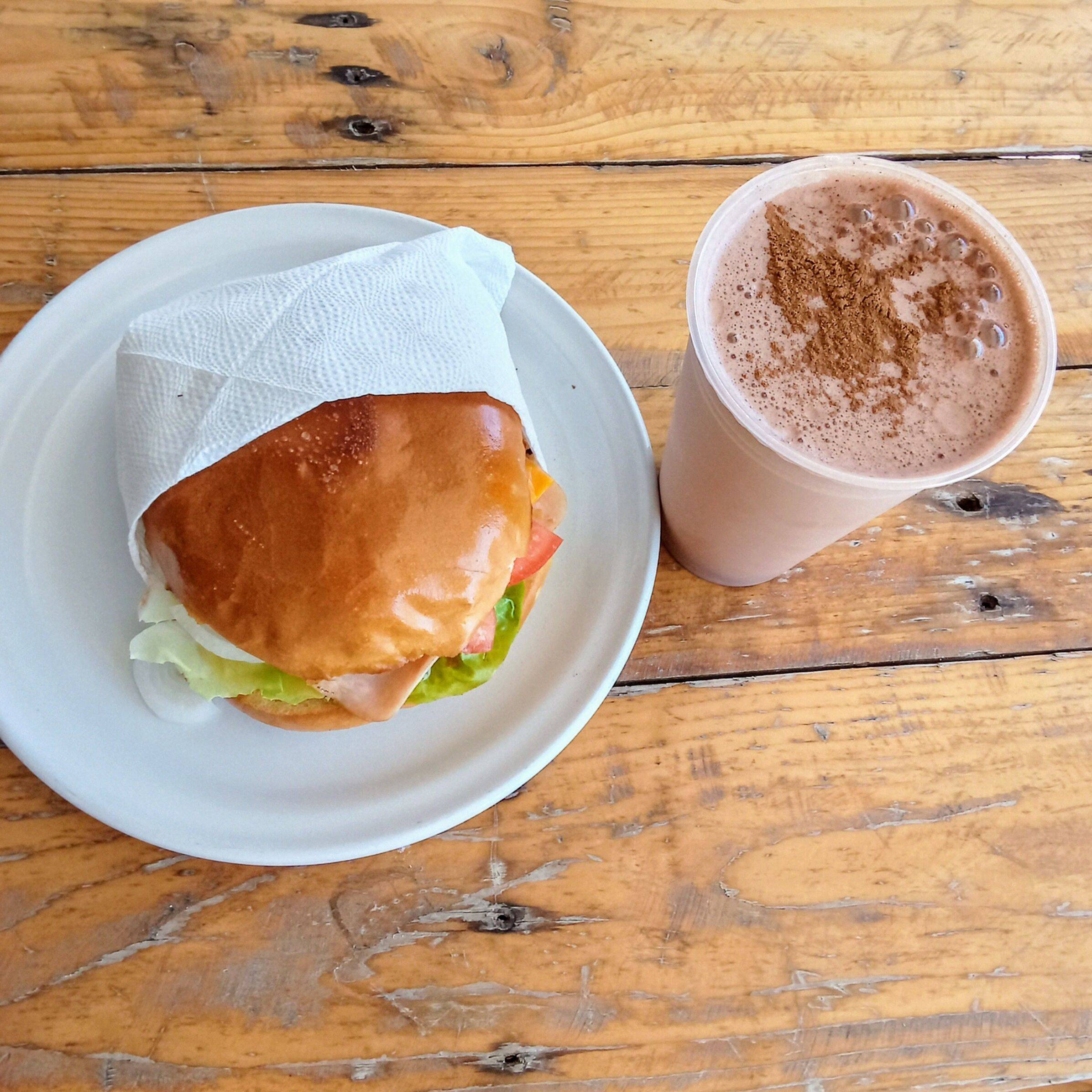 Sándwich triple, jamón, salchicha y queso amarillo, con verdura