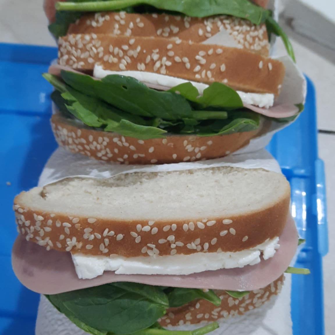 Jamón de pavo,queso panela y espinaca baby,ligero de mayonesa,pan wonder con ajonjolí