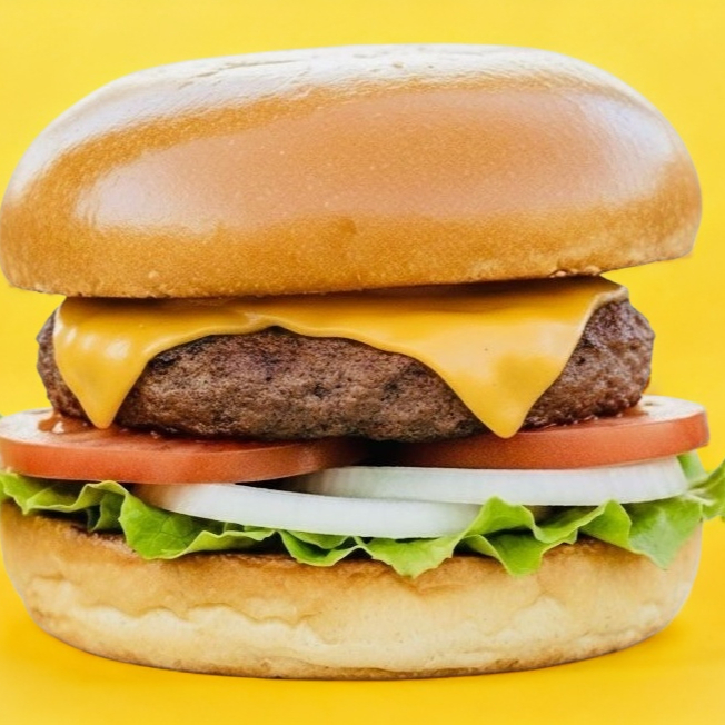 Carne 100% de res, queso americano, pan brioche, lechuga, jitomate y cebolla.