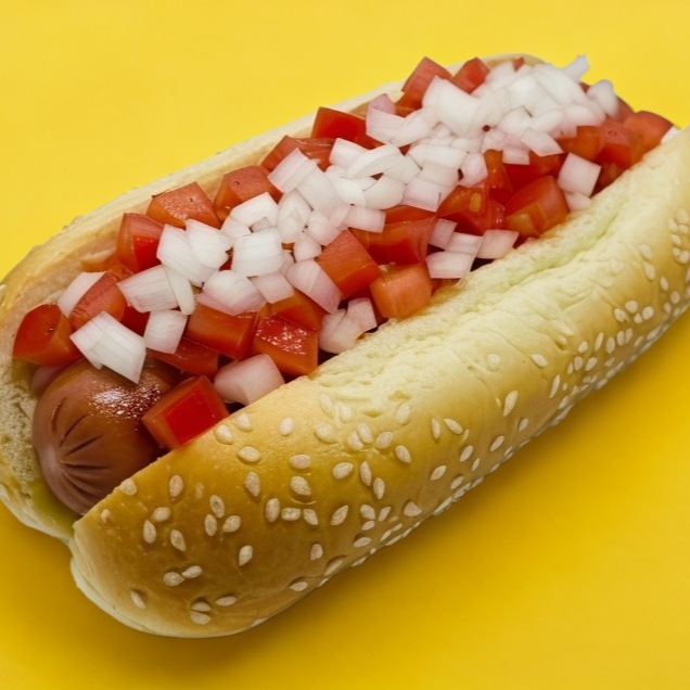 Tamaño jumbo, acompañado de nuestro aderezo de la casa, jitomate y cebolla