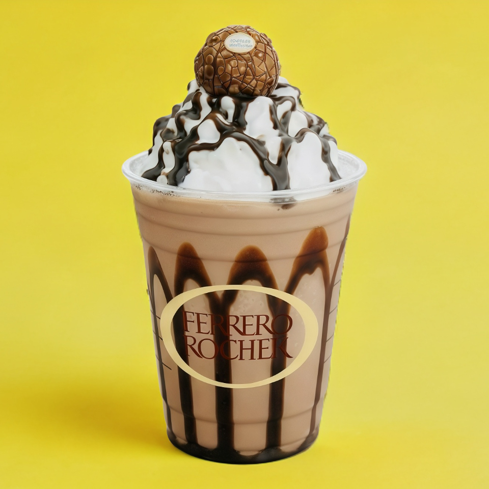 Deliciosa Malteada hecha a base de helado de chocolate, con sabor a Ferrero rocher.