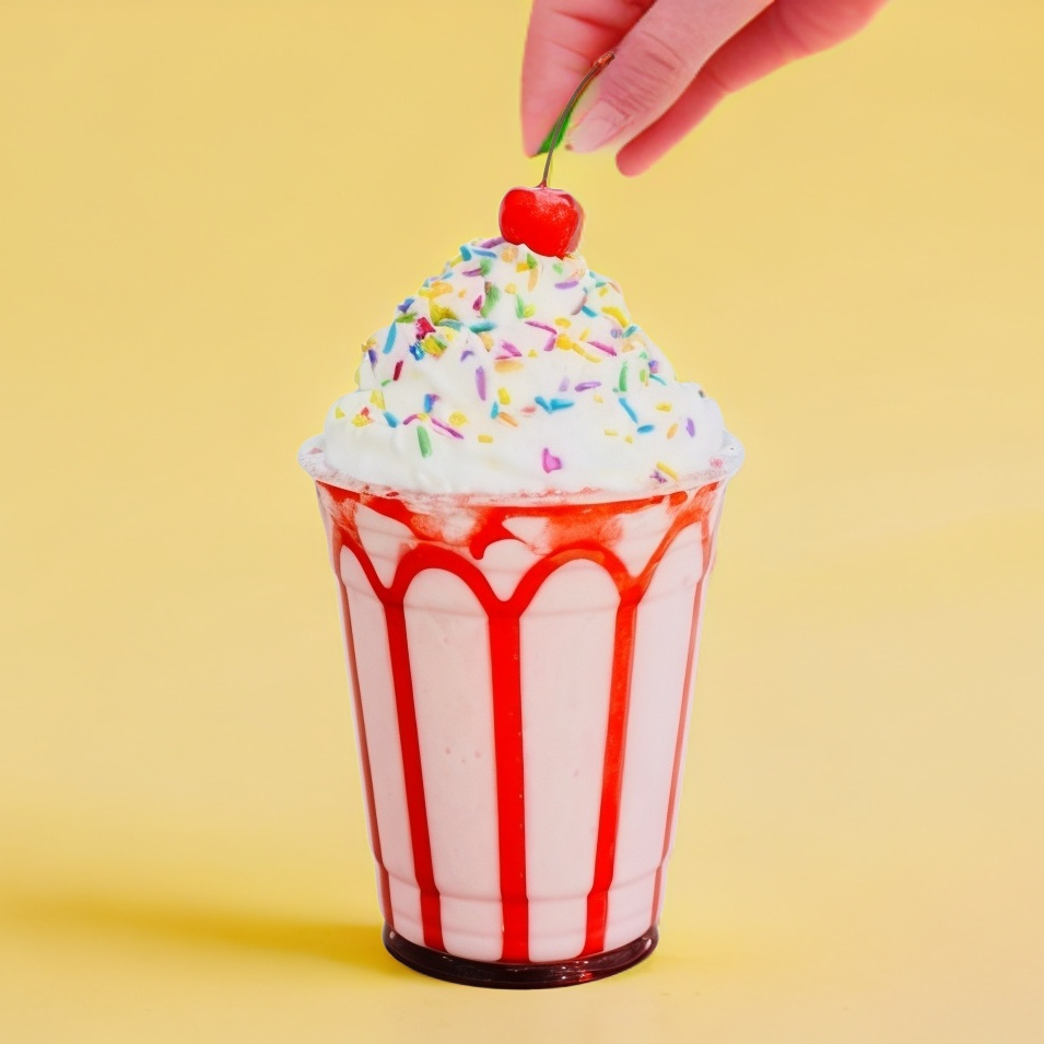 Hecha a base de delicioso helado de fresa con leche y decorada con crema batida