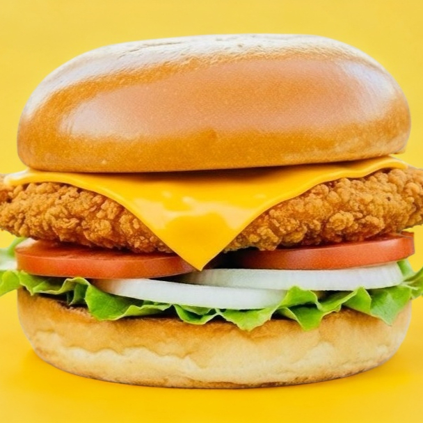 Deliciosap hamburguesa con pan brioche y carne de pollo de la mejor calidad