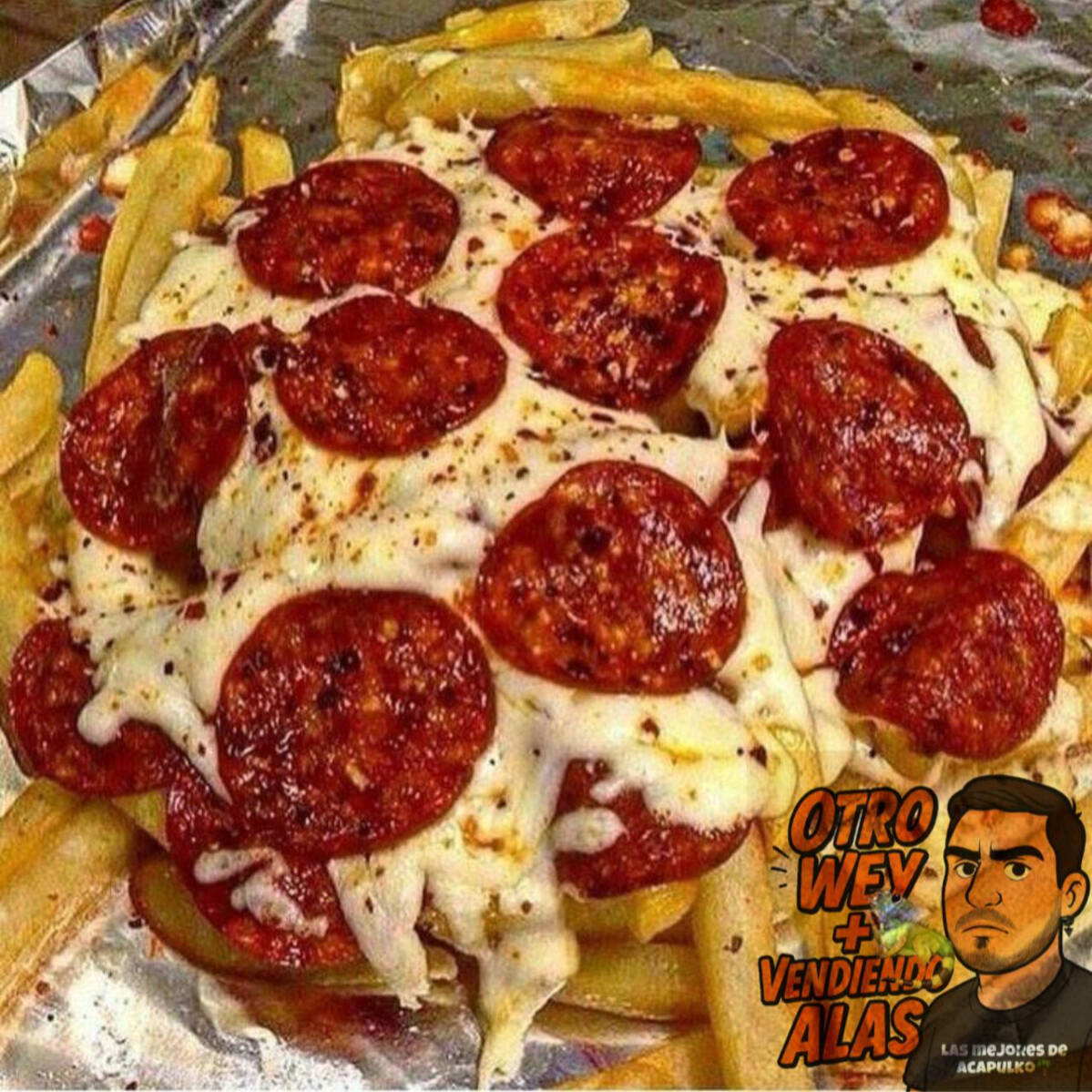 MEDIO KILO DE PAPAS GRATINADAS CON PEPEREONI Y CONDIMENTADAS