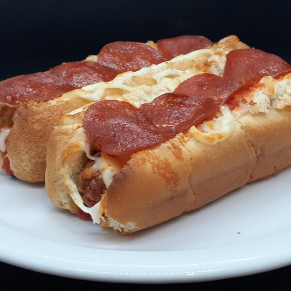 HOT DOG GRATINADO DE PEPERONI Y SALSA DE TOMATE CON PAPAS FRANCESA