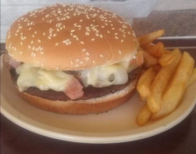 HAMBURGUESA DE RES CON PAPAS