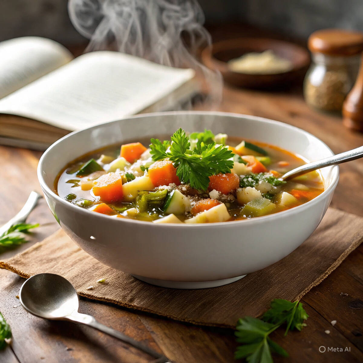 Sopa caliente, verduras de temporada.